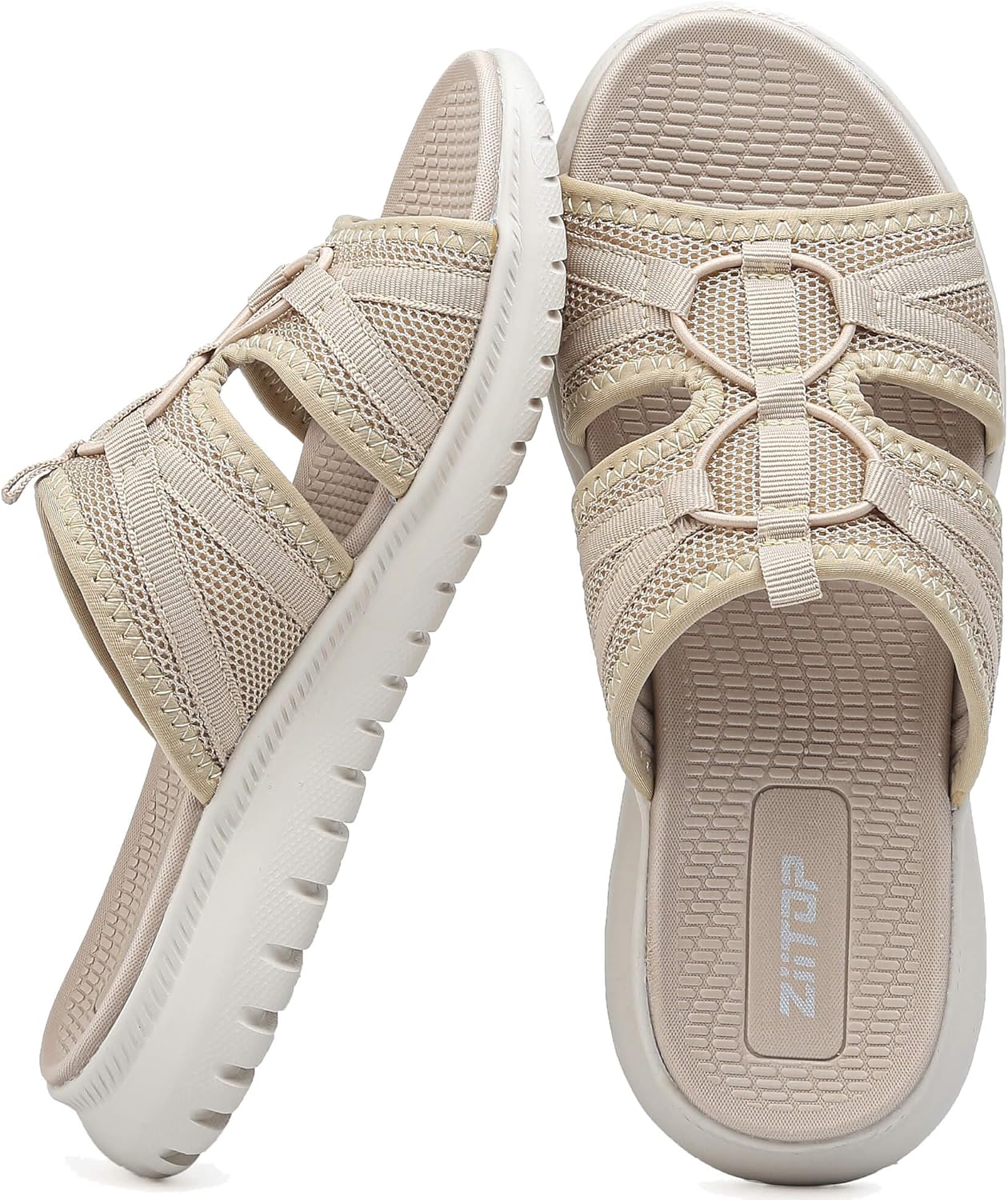 ziitop Slides Sandals For Women Breathable Mesh Sports Athletic Casual Slippers Sandals Lightweight Non Slip With Arch Support