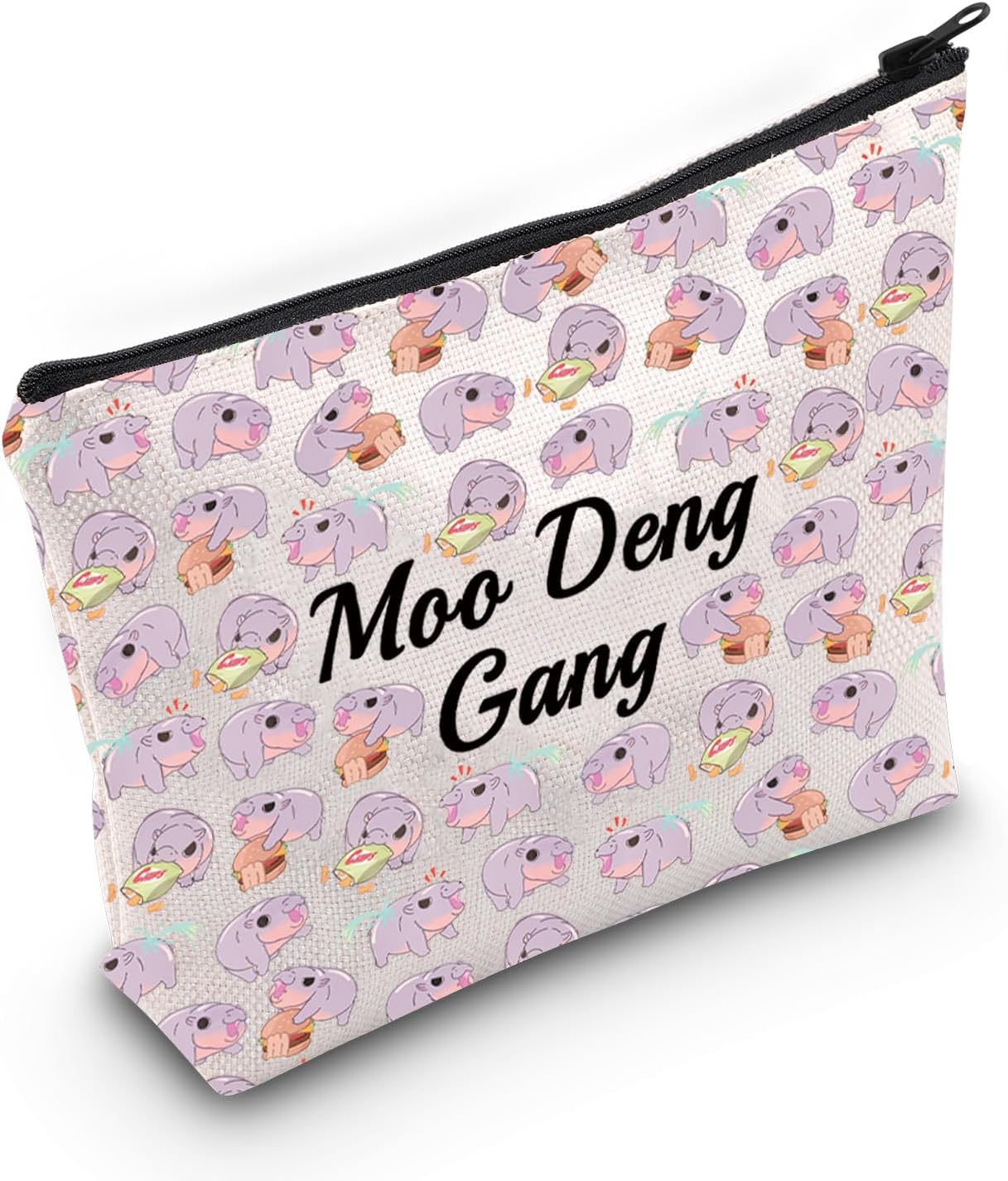 JXGZSO Funny Hippo Cosmetic Bag Moo Deng Gang Makeup Bag Moo Deng Lover Gift Cute Hippo Gift