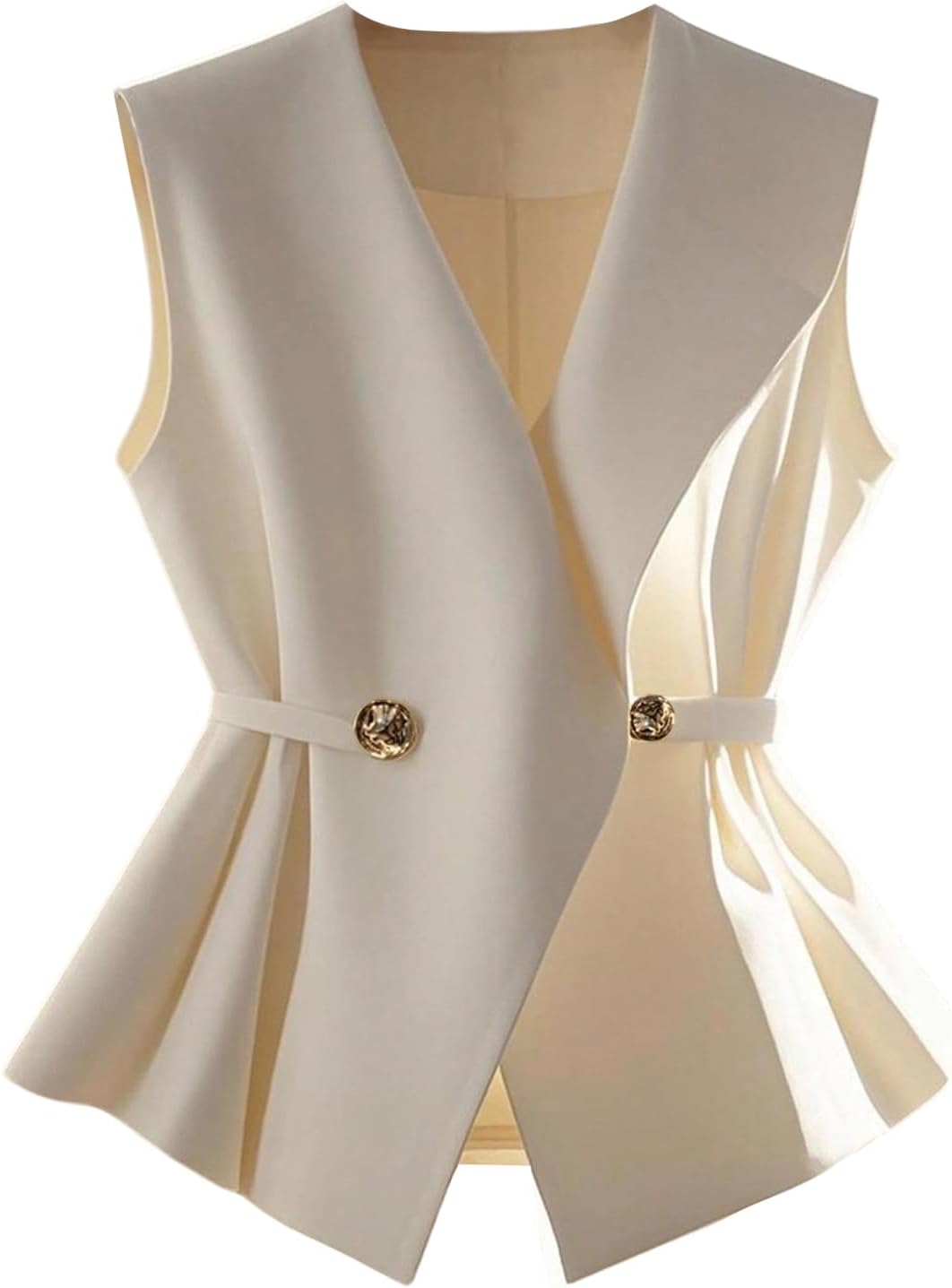 GORGLITTER Women's Double Button Sleeveless Blazers Vest Top Tie Back Suit Vest Wrap V Neck Dressy Office Waistcoat