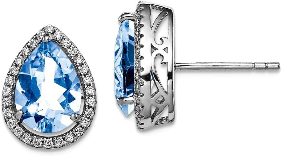 925 Sterling Silver Polished Created Aquamarine and Cubic Zirconia Post Earrings 14x11mm Wide Stud Earring for Women