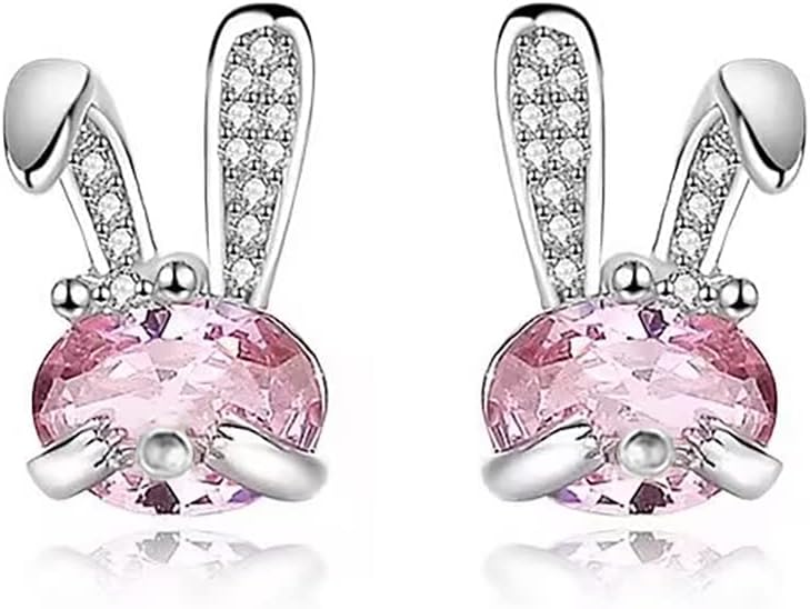 SLUYNZ Solid 925 Sterling Silver Pink Rabbit Earrings Stud for Women Teens CZ Bunny Stud Earrings