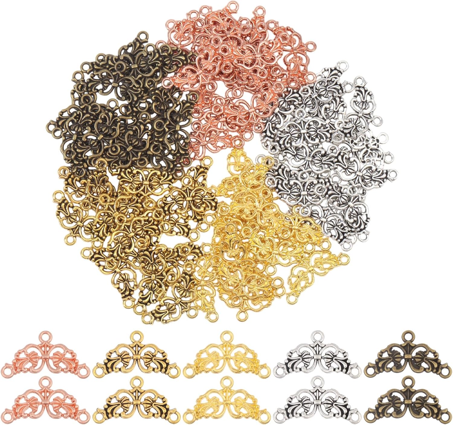 CHGCRAFT 100Pcs 5 Colors Flower Connector Charms Three Holes Alloy Floral Links Hollow Flower Flat Connector Pendants for Jewellery Making Bracelet Necklace Charms DIY
