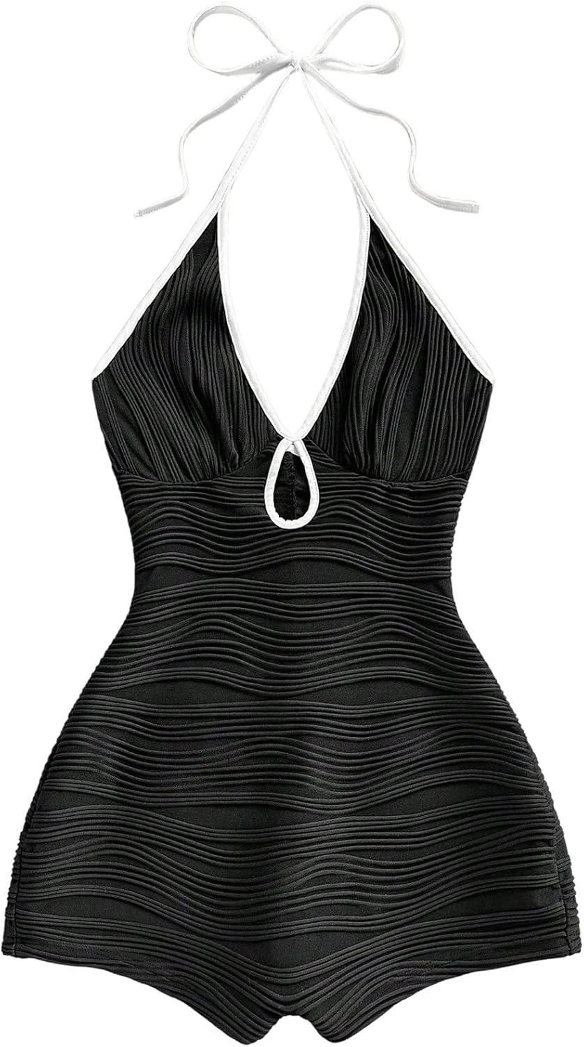 Verdusa Women's Date Night Rompers Textured Cut Out Sleeveless Halter One Piece Bodycon Jumpsuit Rave Outfits