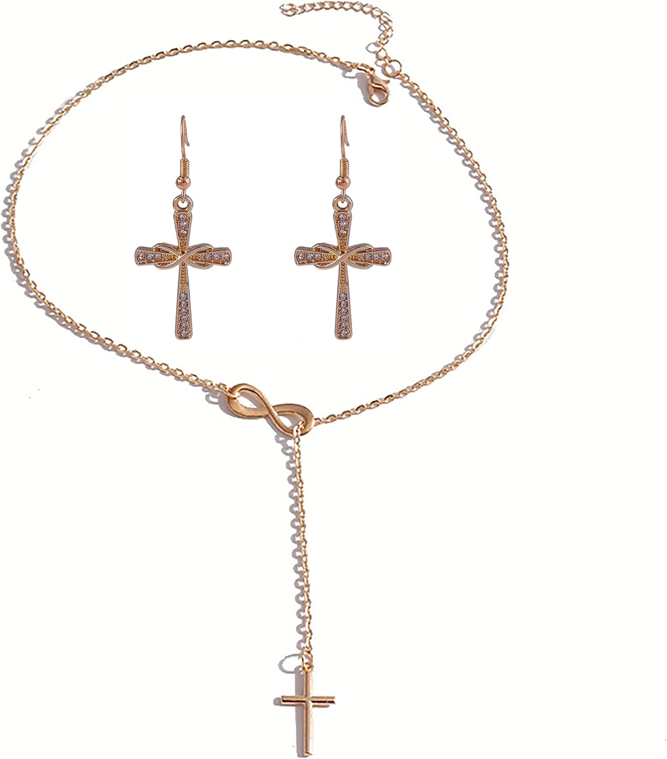 Cross Necklace Gold for Women, Christian Jewelry Set, Eternal Love & Faith Pendant, Anti-Tarnish Italian Alloy, Meaningful Religious Gift