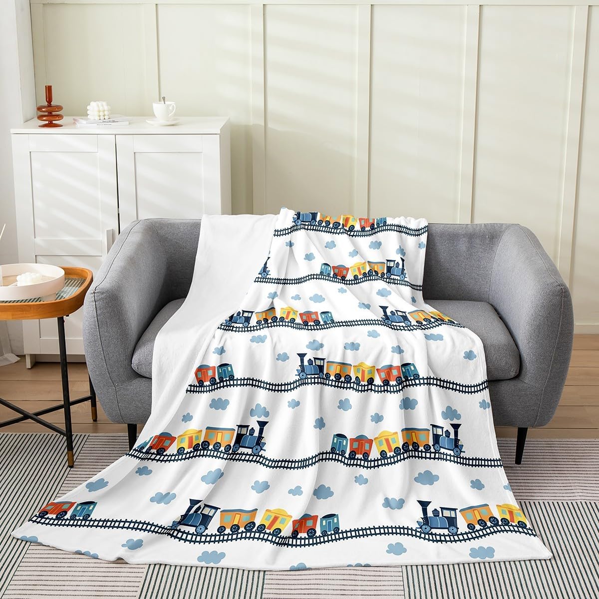 Erosebridal Train Fuzzy Blanket, Cartoon Smoking Engine Throw Blanket for Kids Boys, Construction Vehicles Fleece Blanket for Bed Sofa Couch, Railway Rail Ripple Plush Bed Blanket, 40"X50"
