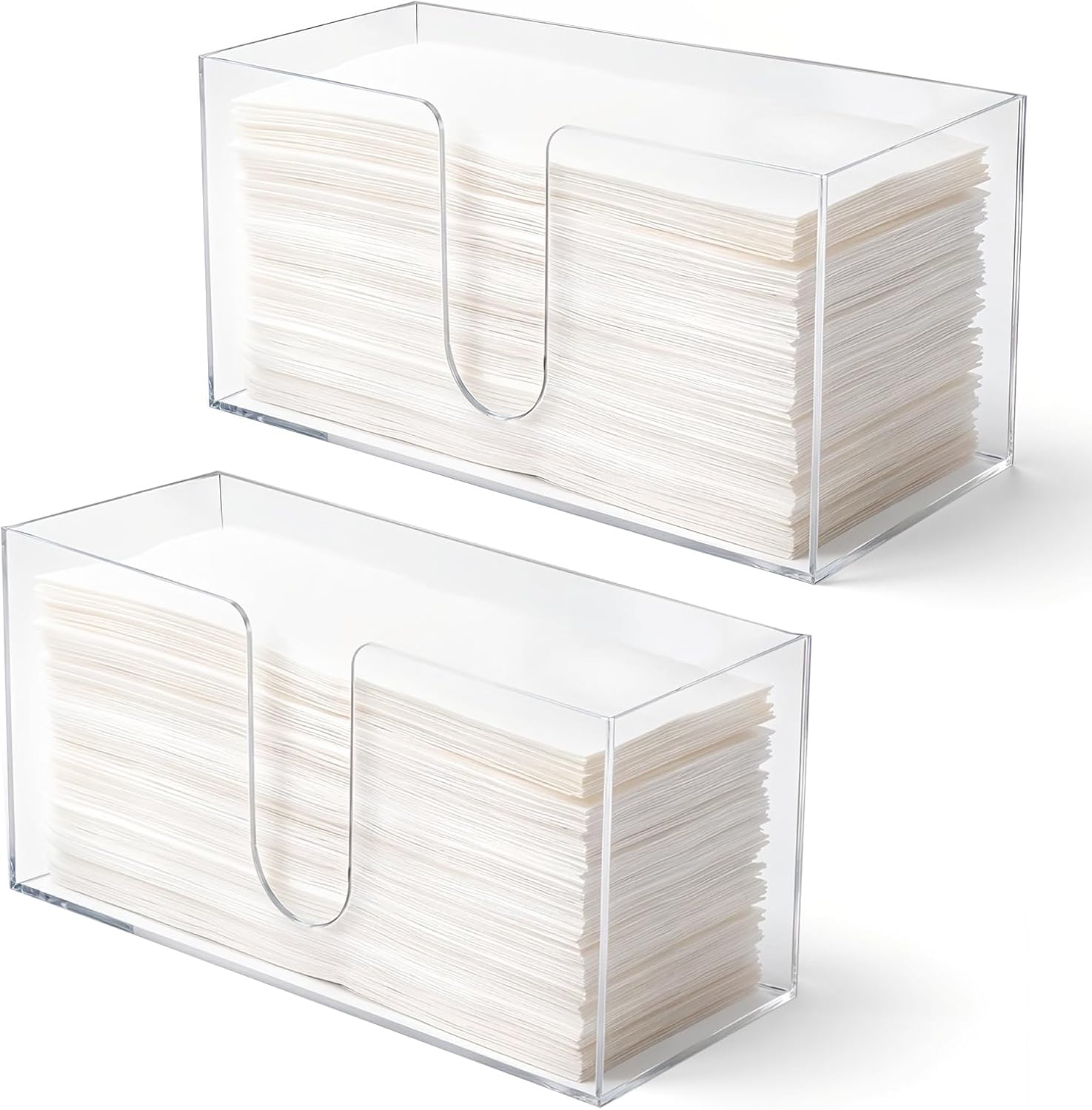 2 Pcs Folded Paper Towel Dispenser, Clear Acrylic Papers Towel Holder for Countertop, 10.6" x 4.1" x 5" For Kitchen, Bathroom & Toilet, Suitable for Z-Fold, C-Fold or Multifold Paper Towels