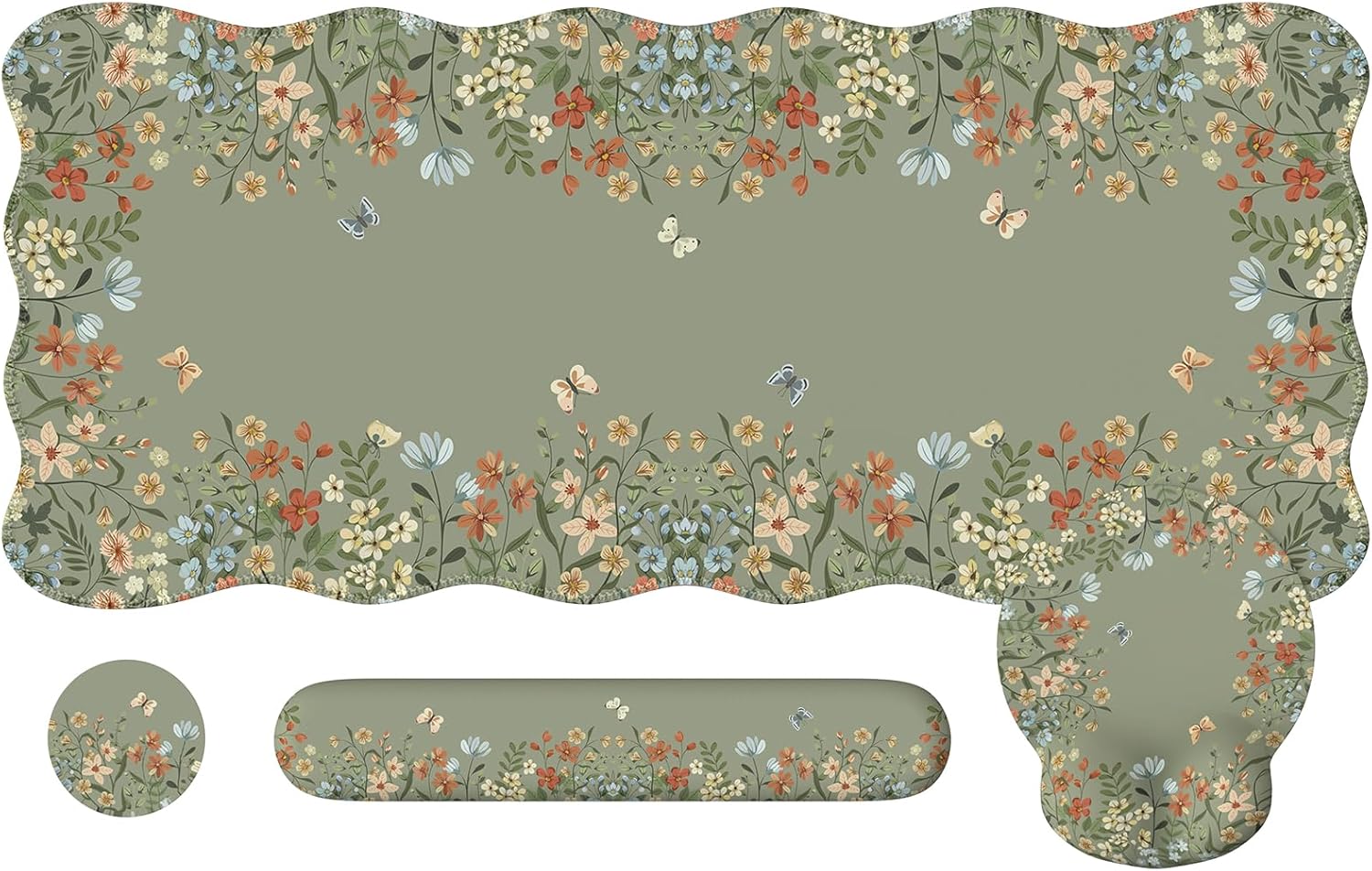 iLeadon Desk Mat Set, Desk Mat with Wrist Support Stitched Edges, Large Mouse Pad with Wrist Rest, Mouse Pad for Computer Keyboard Home Office Women (Green)