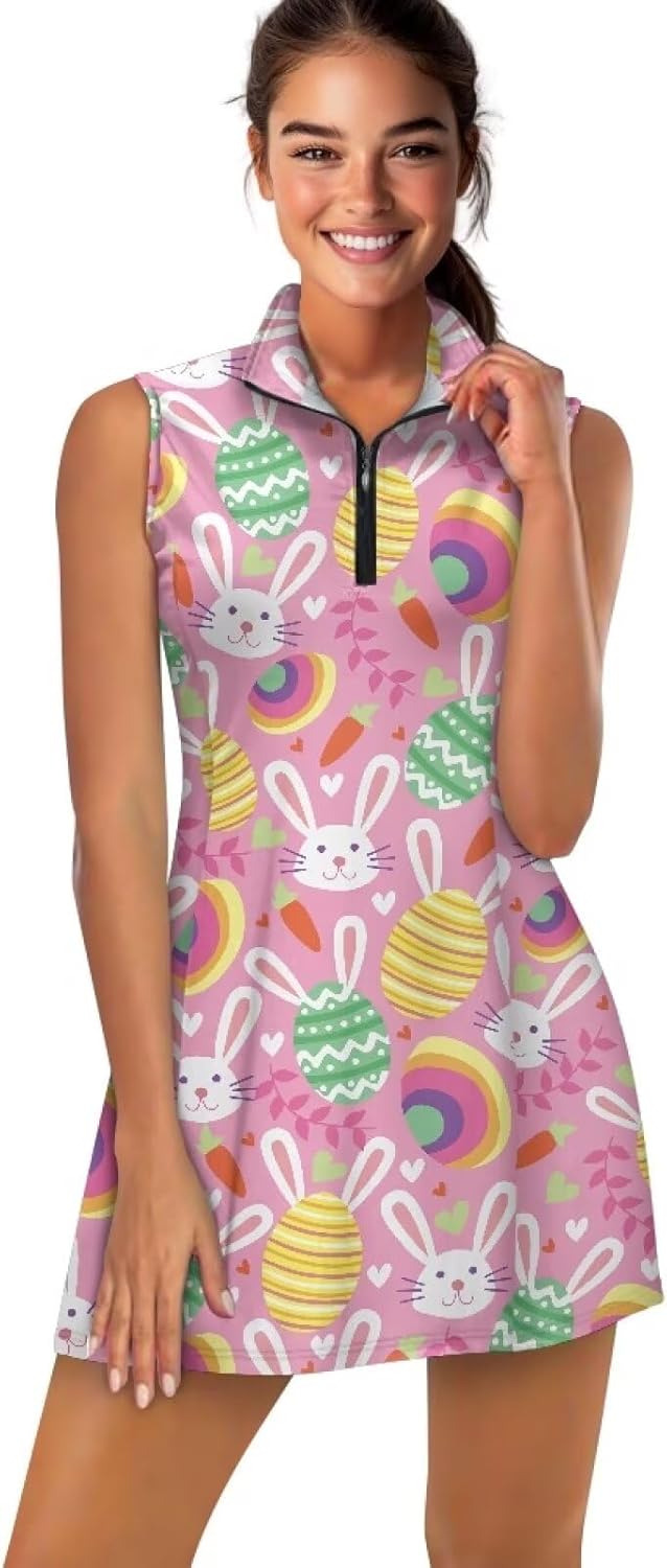 Biyejit Tennis Dress for Women, Zip Up Tennis Golf Dresses with Built in Shorts and Pockets Sleeveless Athletic Dresses