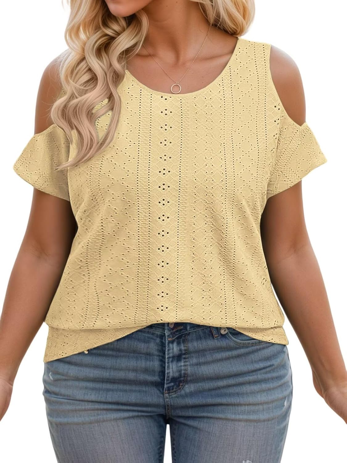 VISILILY Plus-Size-Womens-Summer-Tops Trendy Cold Shoulder Short Sleeve Shirts Casual Crew Neck Cute Tunics Blouses XL-5XL