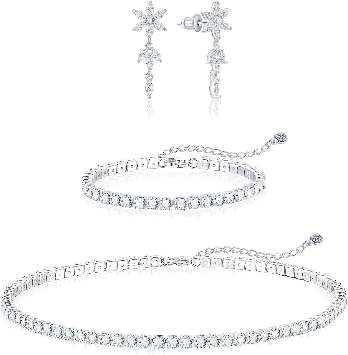 DIBOLA Tennis Necklaces for Women, Silver Jewelry Set Silver Tennis Choker Necklace and Earrings Sets Wedding Jewelry Sets for Bride, Bridal Prom Jewelry Set