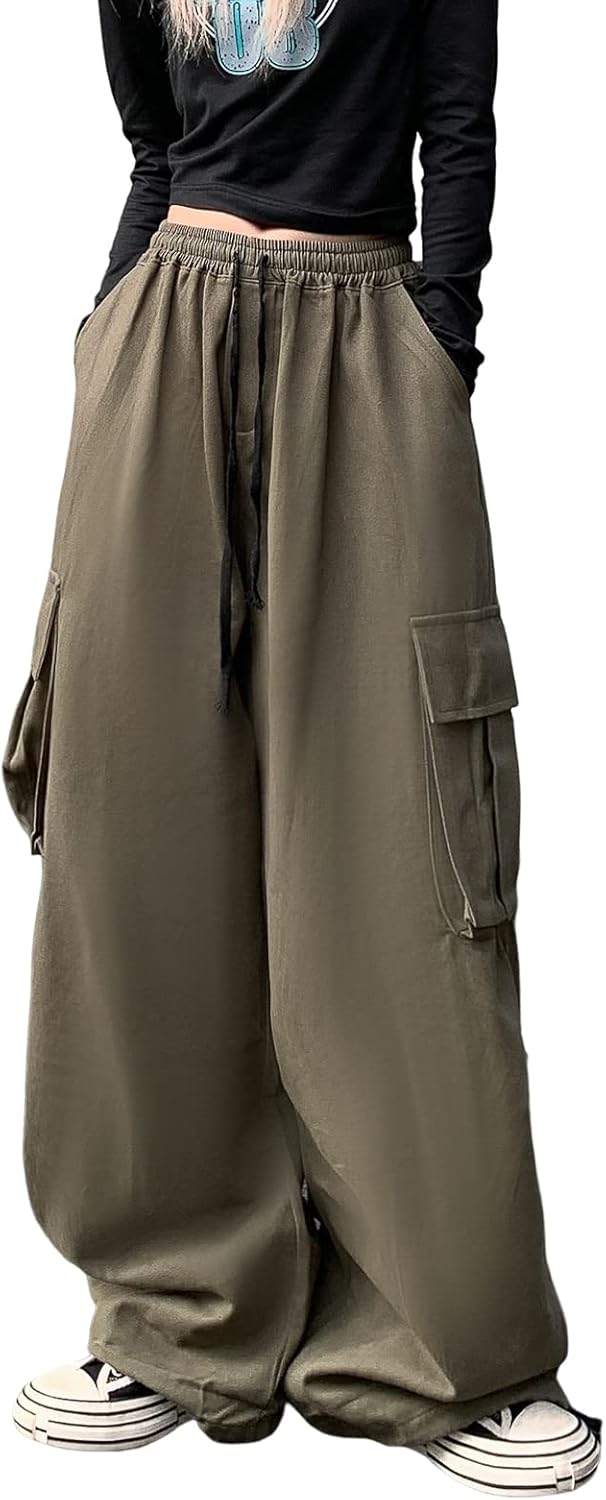 Women's Pants Y2k Cargo Gothic Baggy High Waisted Trousers Harajuku Streetwear Parachute Pants for Men