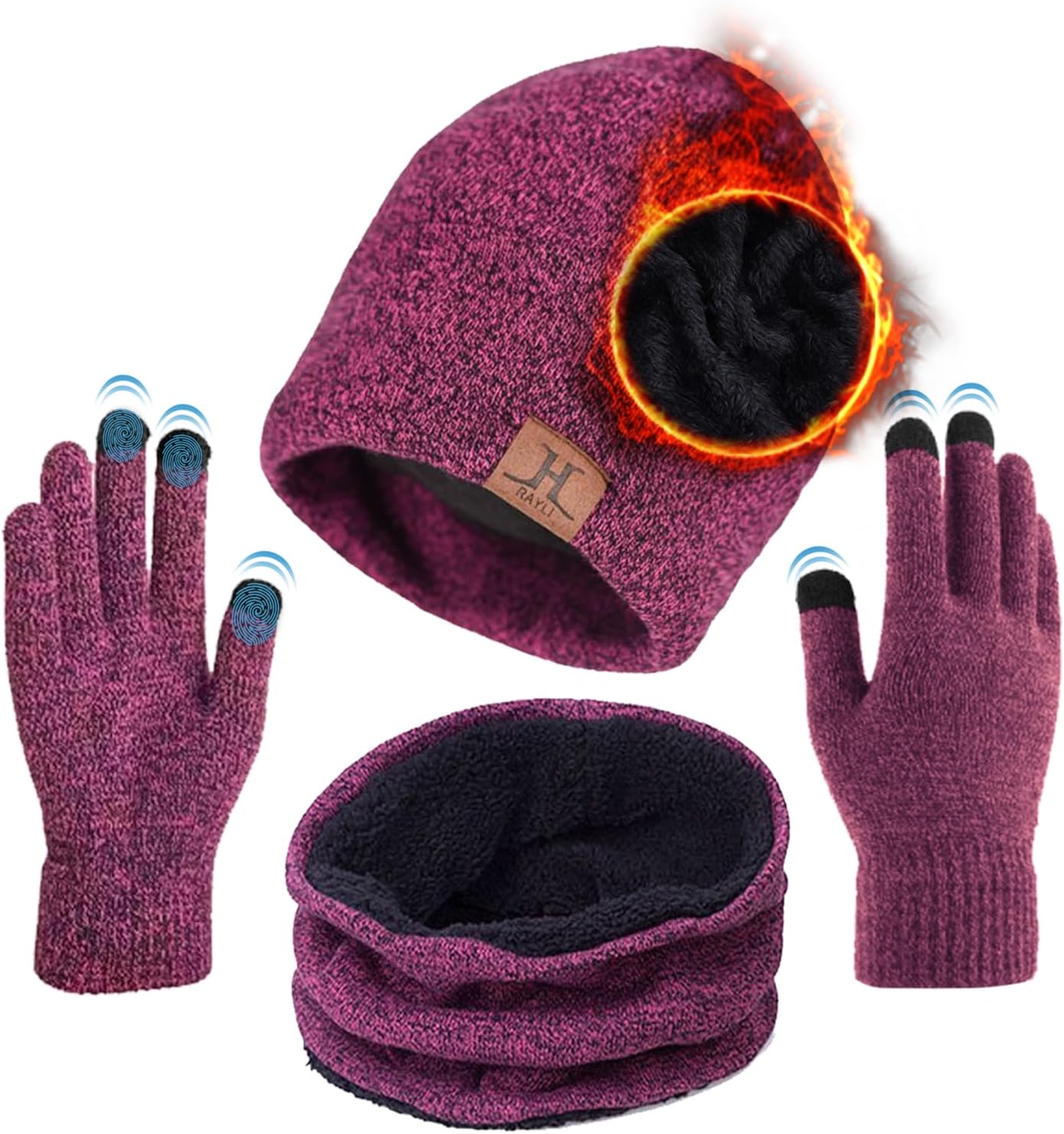 Kehen Winter Beanie Hats Scarf Touchscreen Gloves Set for Men Women Thick Beanies Skull Cap Neck Warmer with Fleece Lined