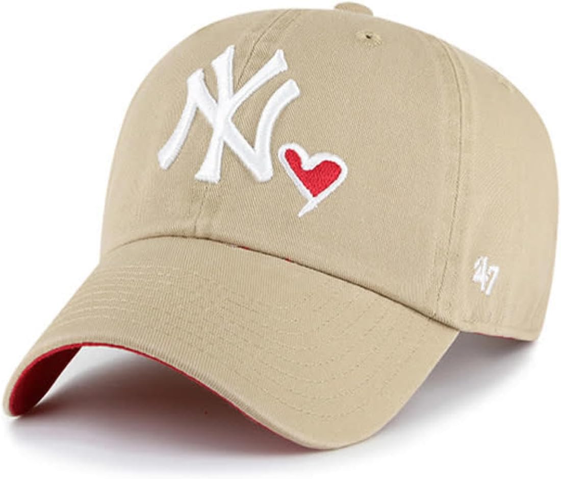 47 Brand MLB New York Yankees Unisex Khaki Red Heart Icon Clean Up Adjustable Baseball Cap Dad Hat Adult One Size Fits All