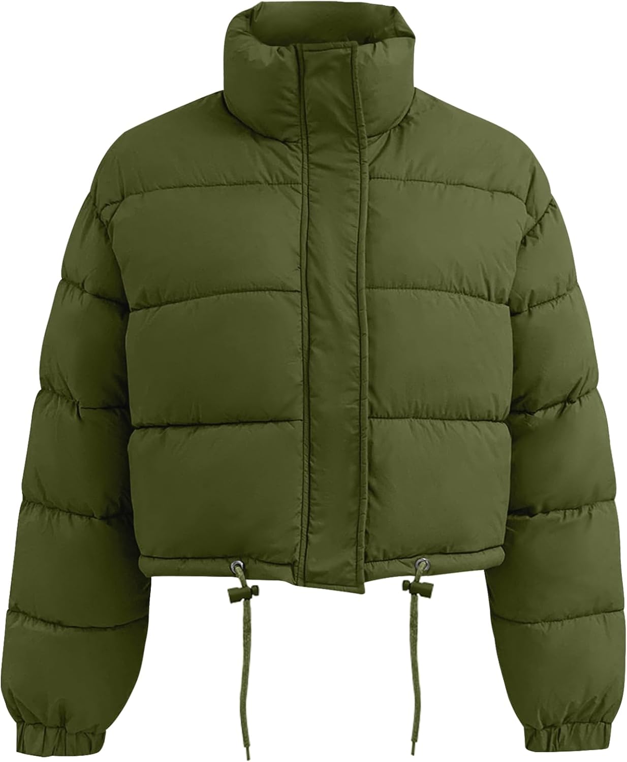 Flygo Women Cropped Puffer Jacket Winter Long Sleeve Quilted Puffy Bubble Padded Short Coats with Drawstring