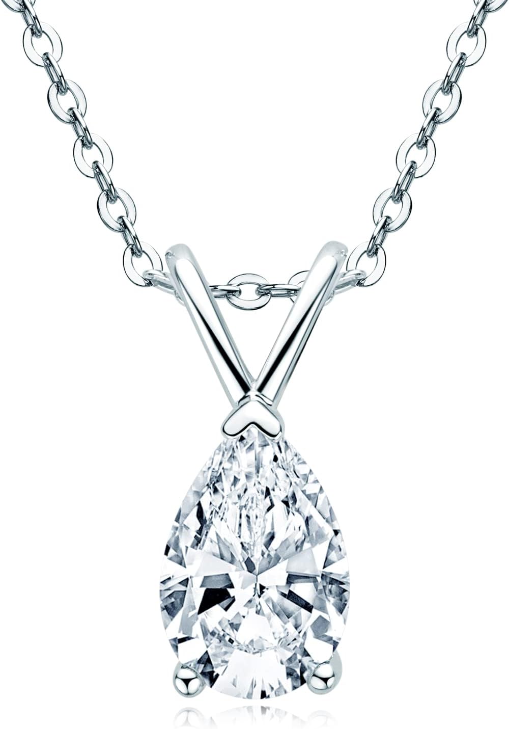 AINUOSHI Moissanite Necklace for Women, 1CT, 2CT, 3CT, 4CT Solitaire Moissanite Pendant Necklace, D-E Color with GRA Certificate, 925 Sterling Silver with 18K Gold Plating, Mother Mom Wife Girlfriend Gifts with Jewelry Box Packed