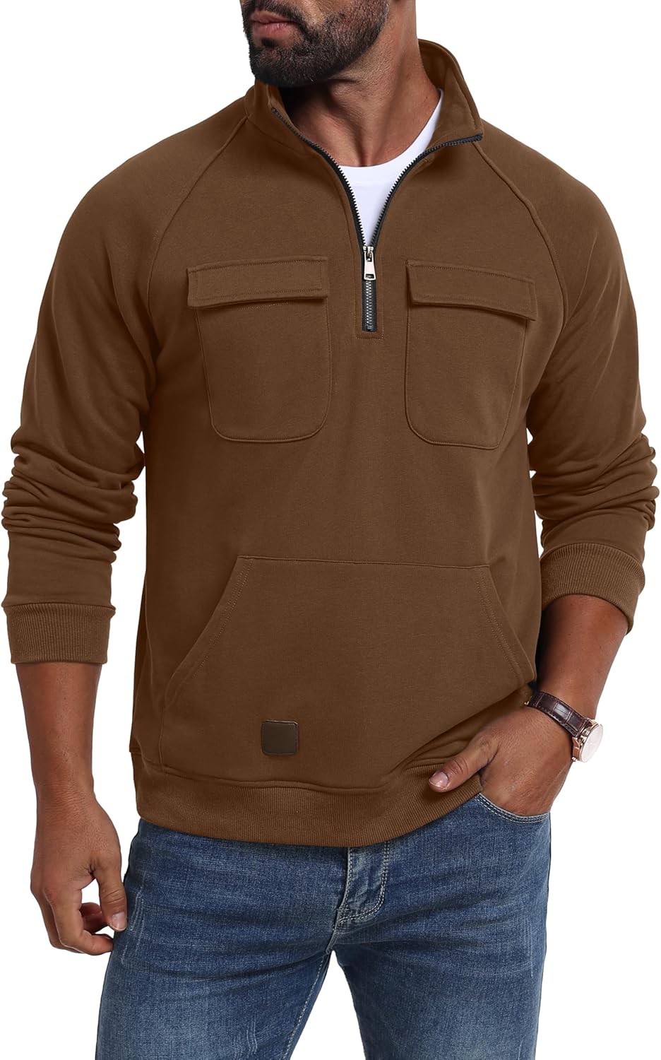 Lepunuo Cargo Sweatshirts for Men Quarter Zip Long Sleeve Warm Fleece Tactical Pullover Casual Athletic Loose Sweatshirts