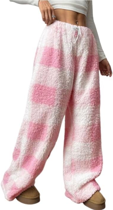 Womens Plush Pajama Pants Plaid Pj Bottoms Winter Warm Fuzzy Fleece Lounge Pants