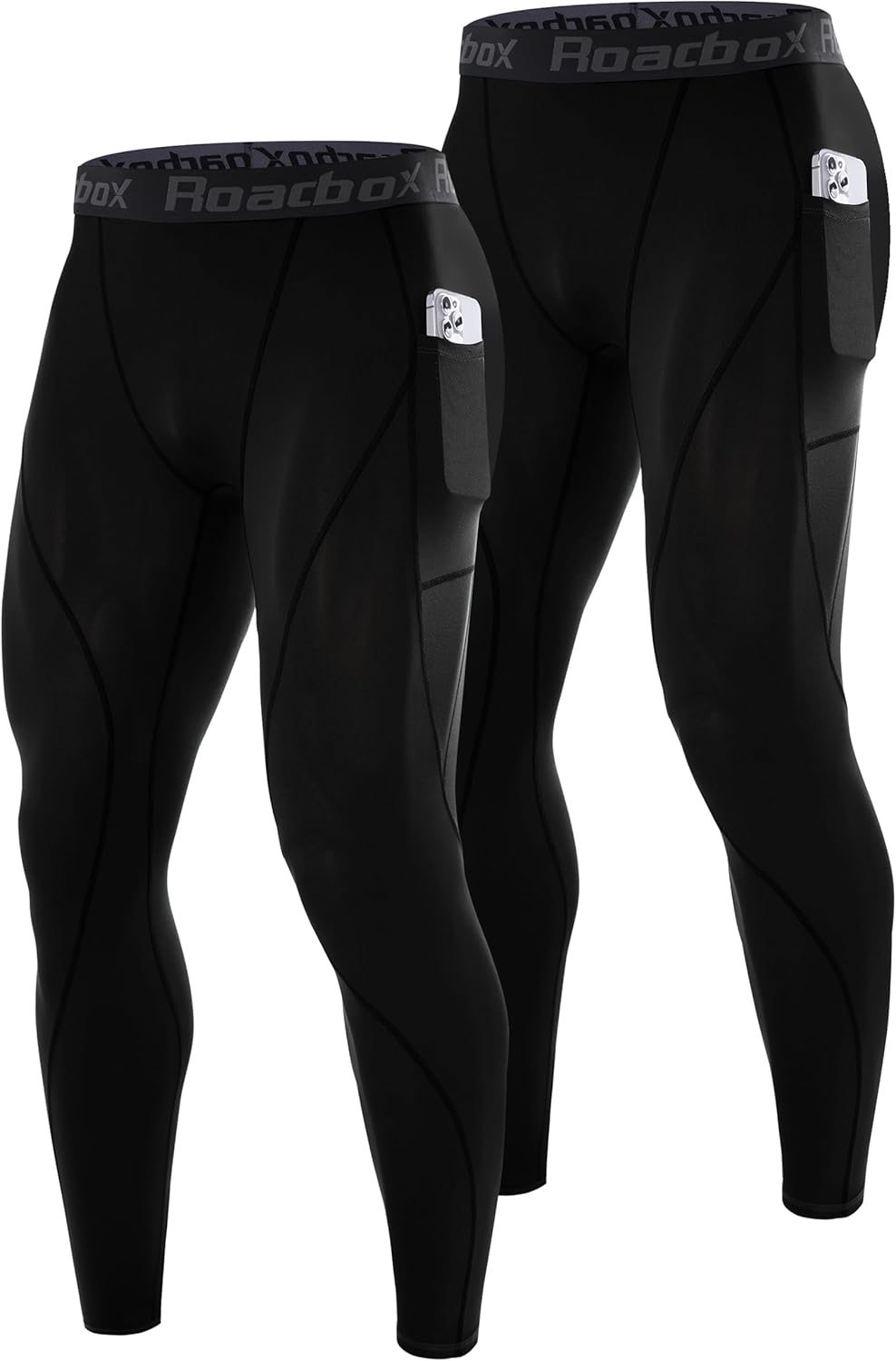 Roadbox 2 Pack Men's Compression Pants, Quick Dry Running Tights Leggings with Pockets, Athletic Base Layer for Workout Gym