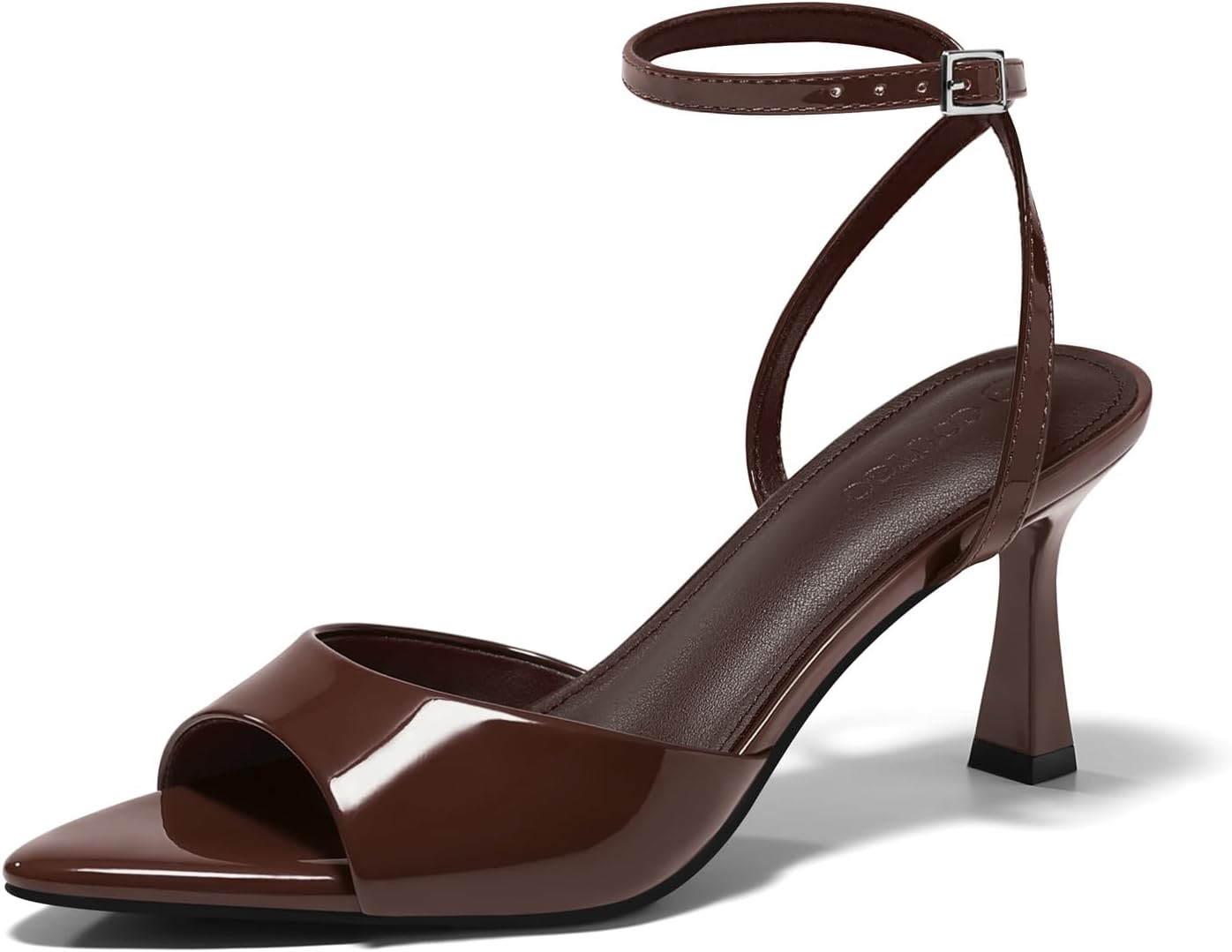 Coutgo Womens Kitten Heels Sandals Pointed Open Toe Ankle Buckle Strap Summer Dress Shoes