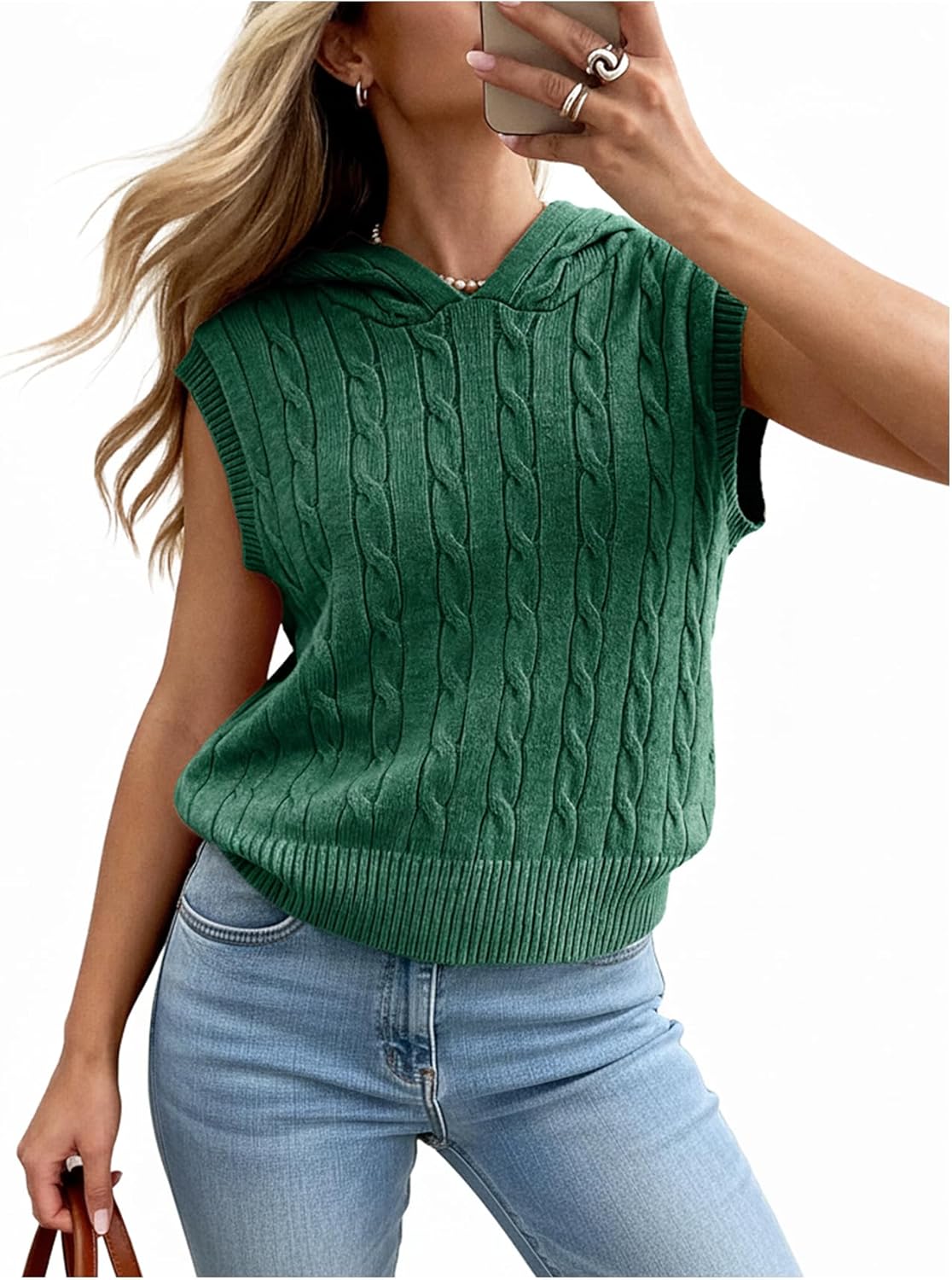Women’s Sweater Vest Sleeveless Cable Hoodies Casual Knit Sweater Solid Lightweight Pullover Summer Hooded Tank Tops
