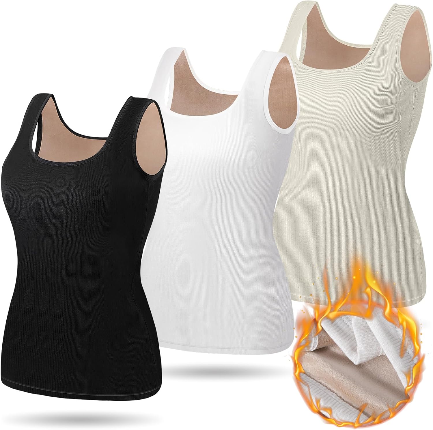 Women Thermal Tank Top - Loose Fit Plus Size Thick Warm Sleeveless Warm Fleece Lined Camis Underwear Top Base Layer