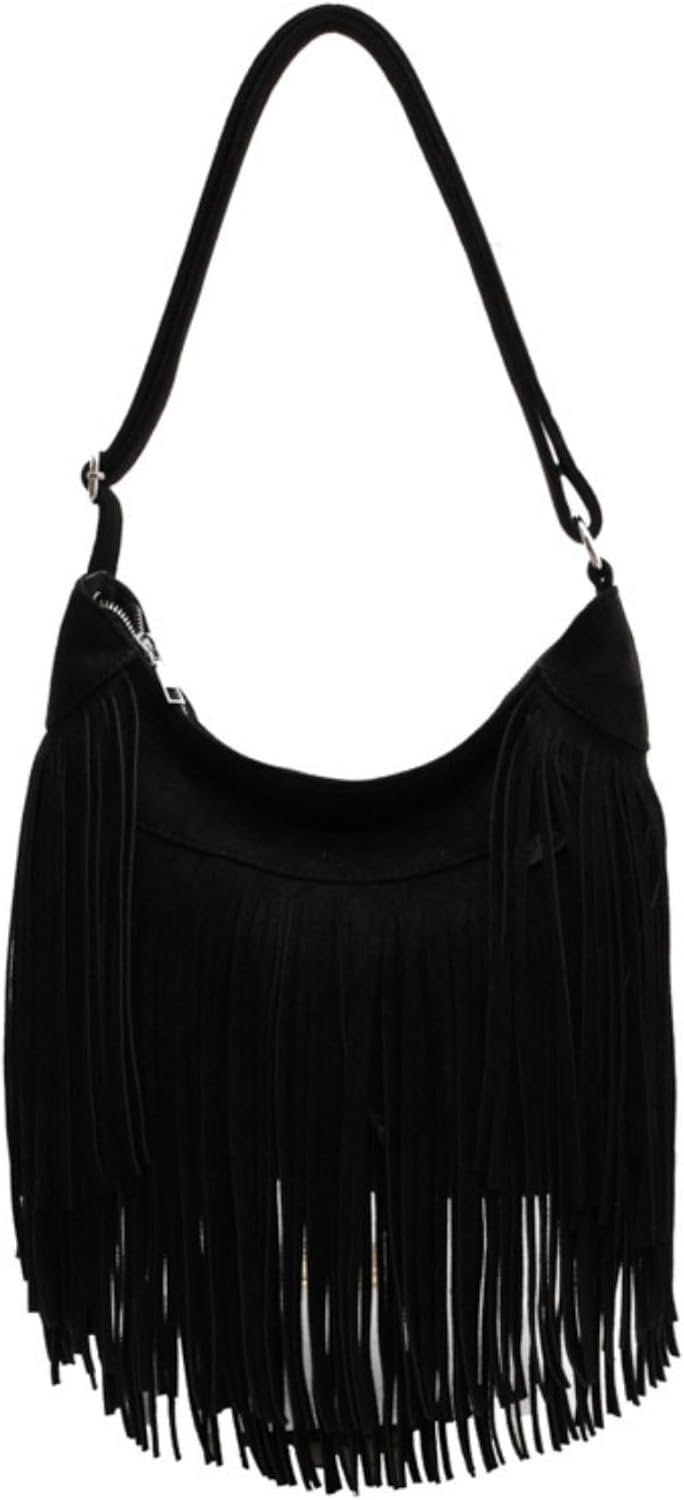 Women Vintage Suede Fringe Hobo Bag Tote Shoulder Bag Crossbody Bag and Hippie Western Cowgirl Purse Shoulder Bag
