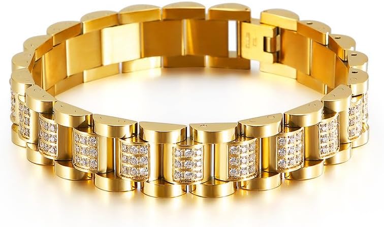 18k Gold Thick Chain Bracelet, Suitable for Men and Women | Miami Cuban Watch Chain, Suitable for Christmas gifts, With gift Box