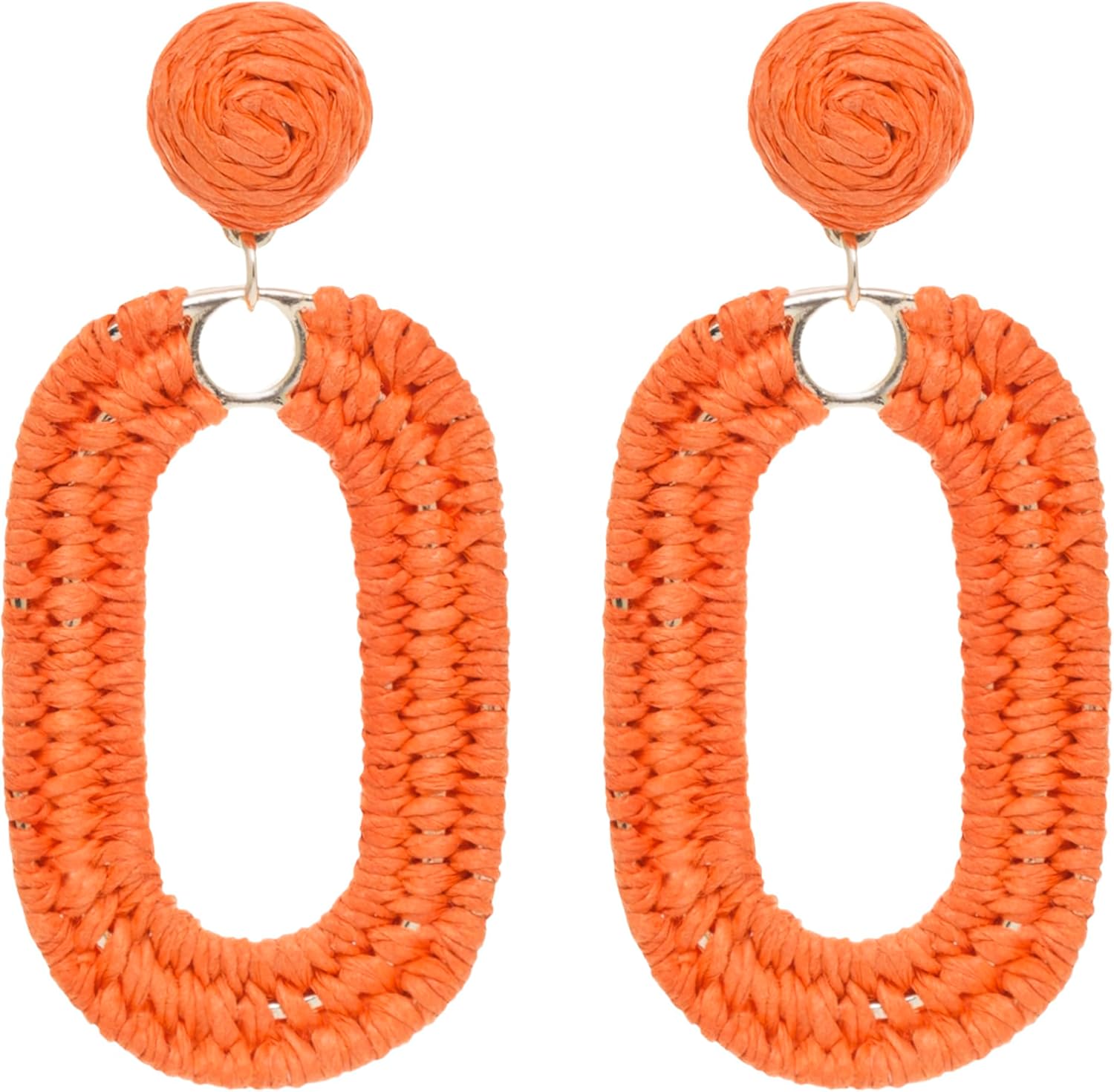 Raffia Oval Earrings for Women - Boho Woven Rattan Earrings for Summer Beach - Tropical Vacation Earrings