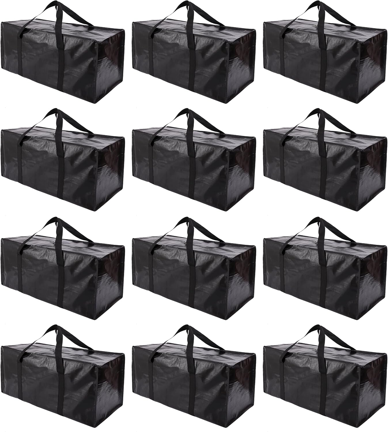 Extra Large Moving Bags with Zippers & Carrying Handles, Heavy-Duty Storage Tote for Space Saving Moving Storage, Fold Flat, Alternative to Box and Bin - 12 Pack, Black