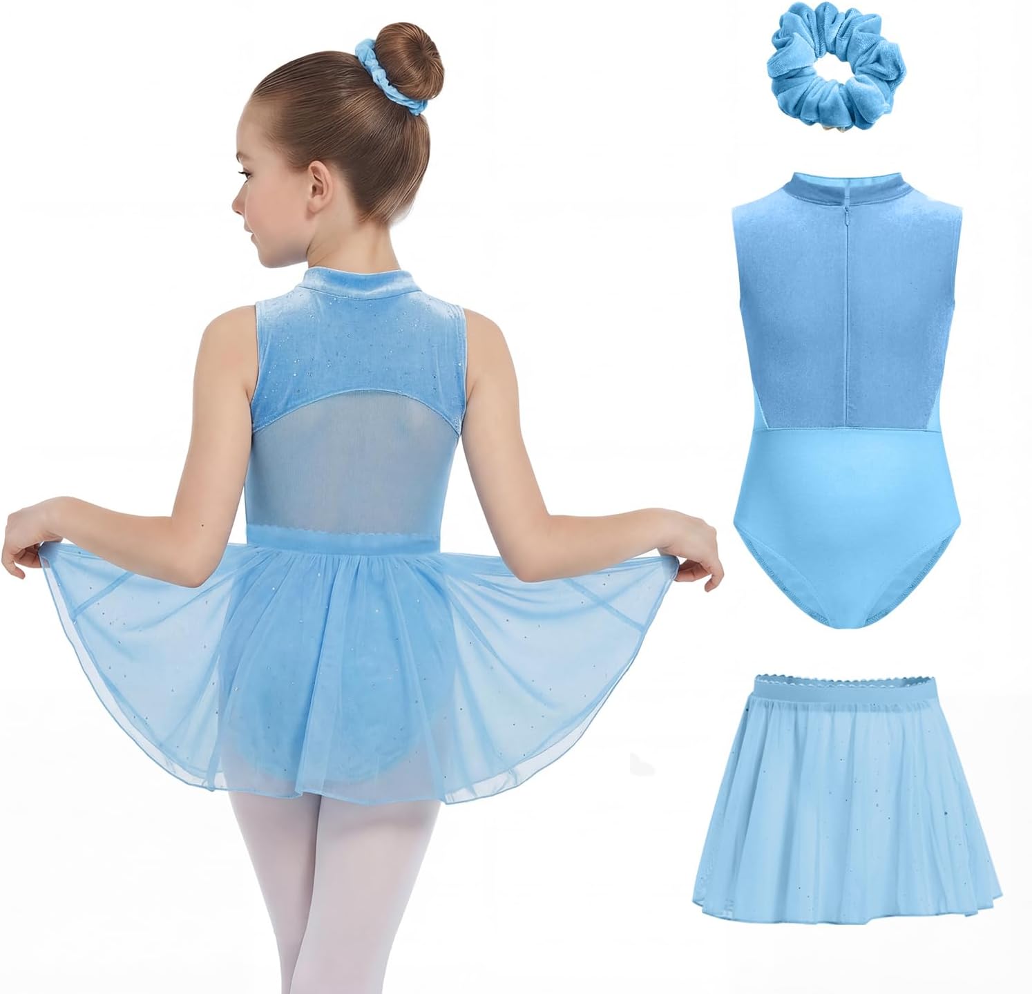 JiAmy Girls Ballet Leotards with Invisible Zipper & Removable Skirt Mesh Back Cutout Dance Dress Outfit for Toddler/Kids