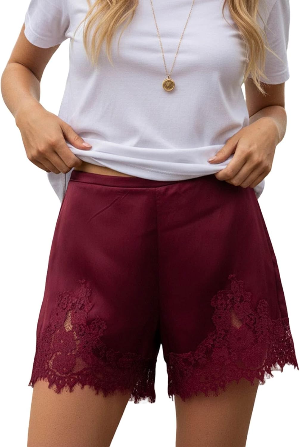 Women's Satin Silk Lace Shorts High Waisted Patchwork Mini Shorts Trendy Lounge Sleep Wear Pajama Bottoms