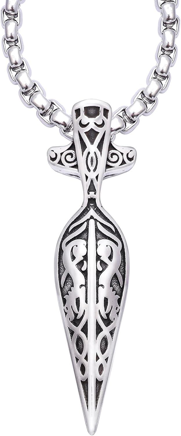 HAQUIL Viking Necklace, Stainless Steel Odin Gungnir Pendant, Box Chain, Viking Jewelry Men