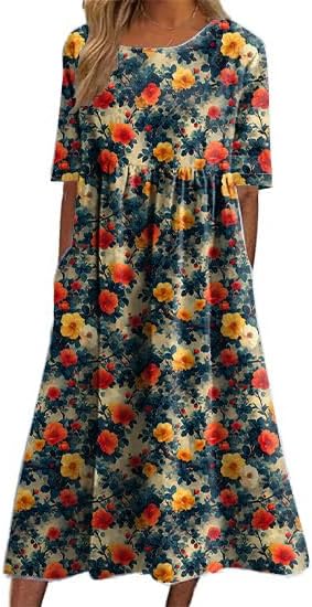 Boho Sundresses for Women Trendy Short Sleeve Crew Neck Floral Casual Plus Size Dress