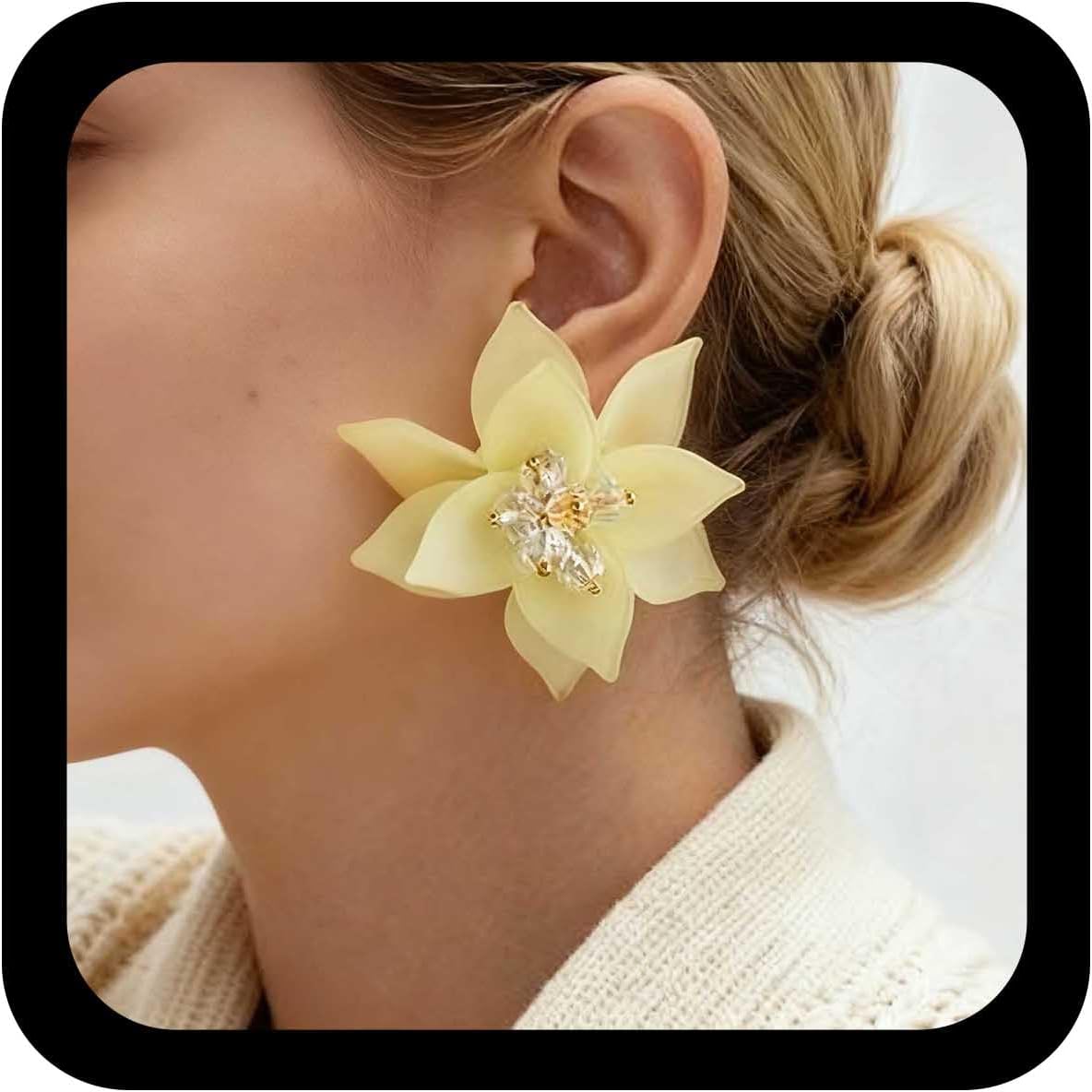 Boho White Acrylic Flower Earrings Resin Floral Stud Earrings Large Flower Crystal Earring Statement Bridal Floral Earring Resin Petal Dangle Camellia Stud Jewelry for Women