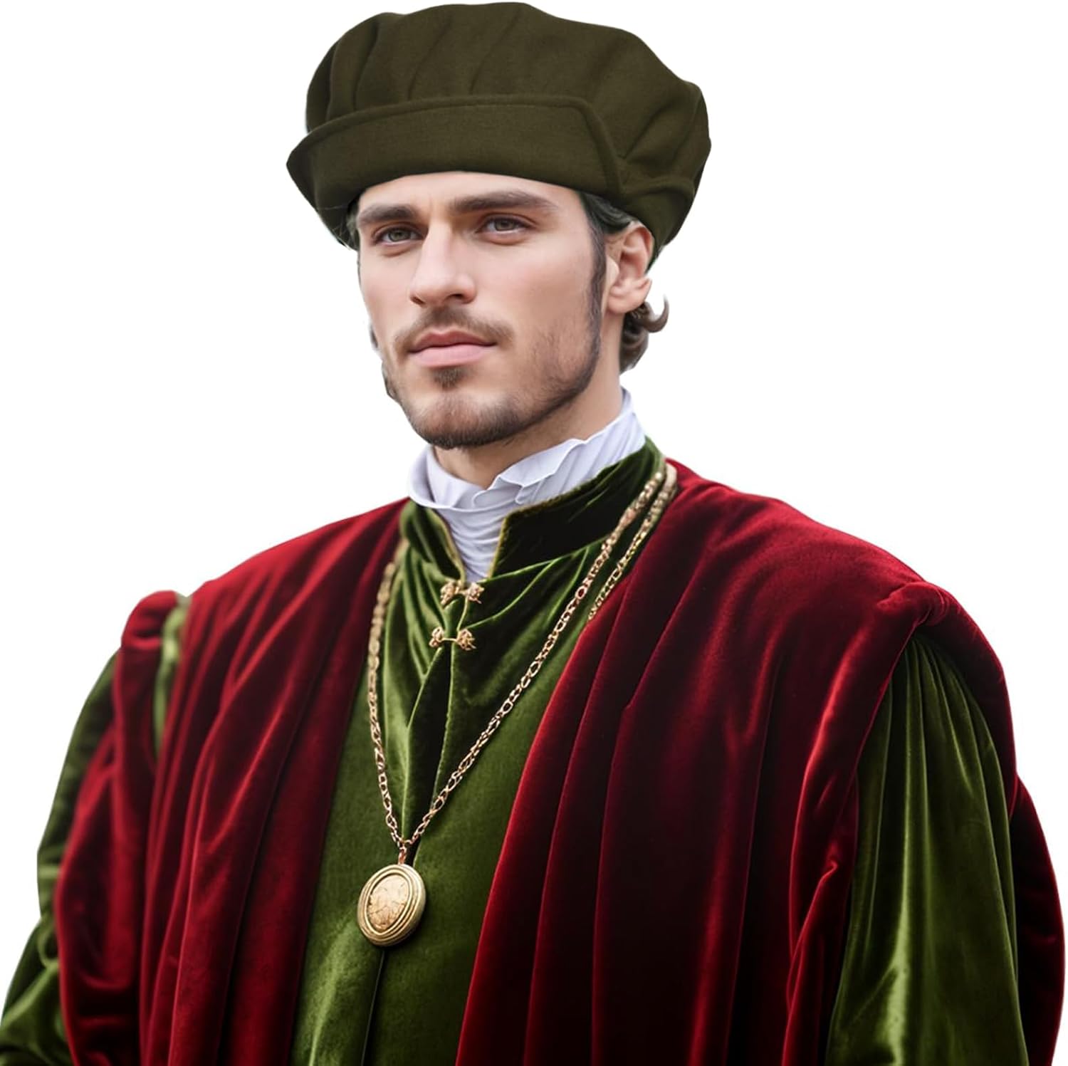Medieval Tudor Flat Renaissance Fair Beret Hat Cosplay Costume Accessories for Women Men