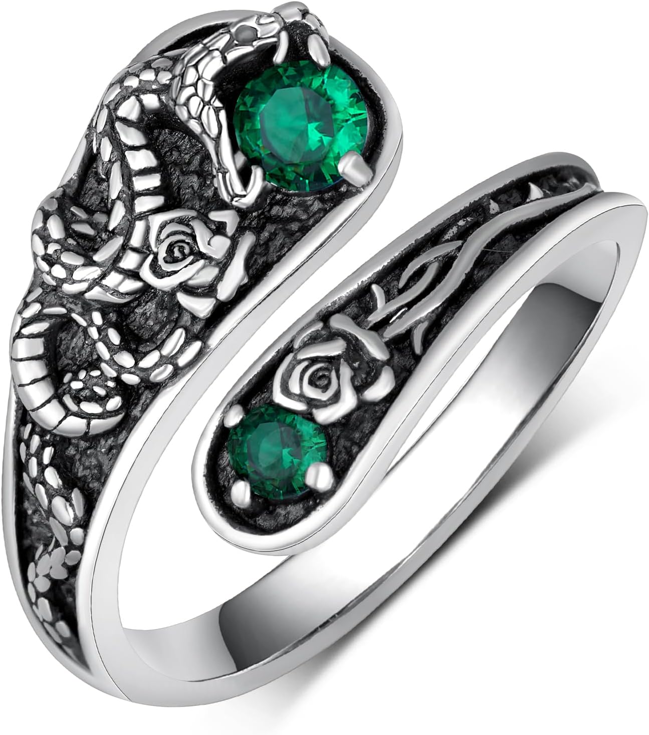 Witches Knot/Just Breathe/Snake/Dragonfly Ring 925 Sterling Silver Spoon Ring Adjustable Thumb Open Ring for Women