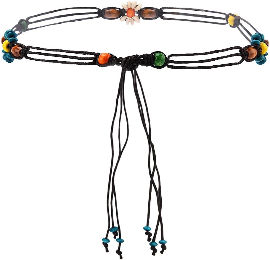 Boho Wooden Bead Waist Belt for Women Adjustable Bohemian Rope Belt forSummer Beach Accessories