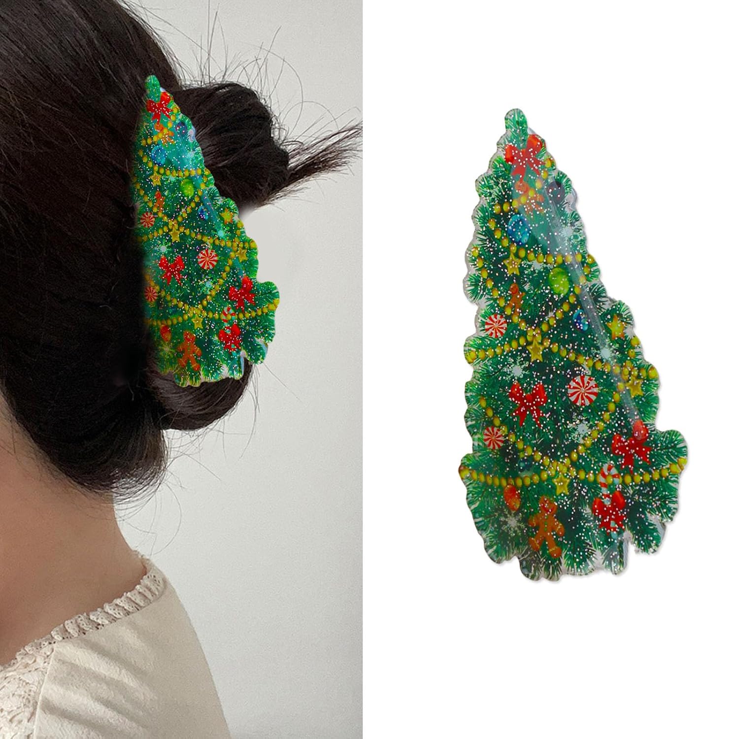 Christmas Hair Clips Christmas Green Claw Clips Christmas Tree Hair Claw Clips for Thin/Thick Hair Style Acrylic Hair Accessories for Women Christmas Decor 1PCS