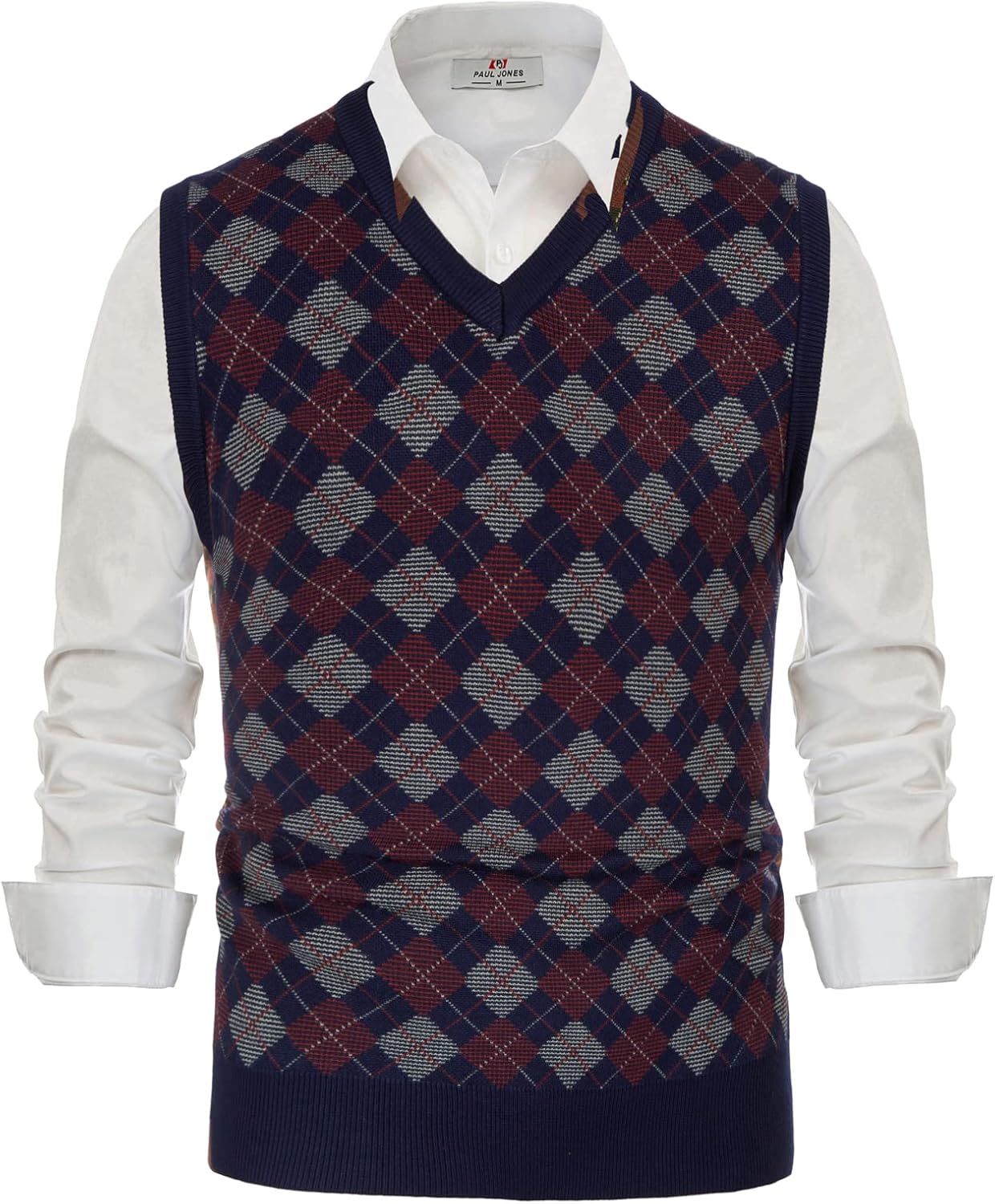 PJ PAUL JONES Mens V-Neck Knitted Sweater Vest Solid Plain Sleeveless Pullover Knitwear