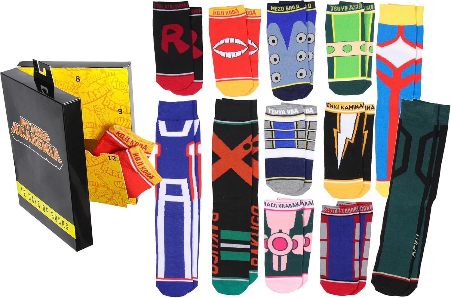 Seven Times Six My Hero Academia Men's 12 Days Of Socks Crew and Ankle Mix and Match Advent Gift Box Set 12 Pairs
