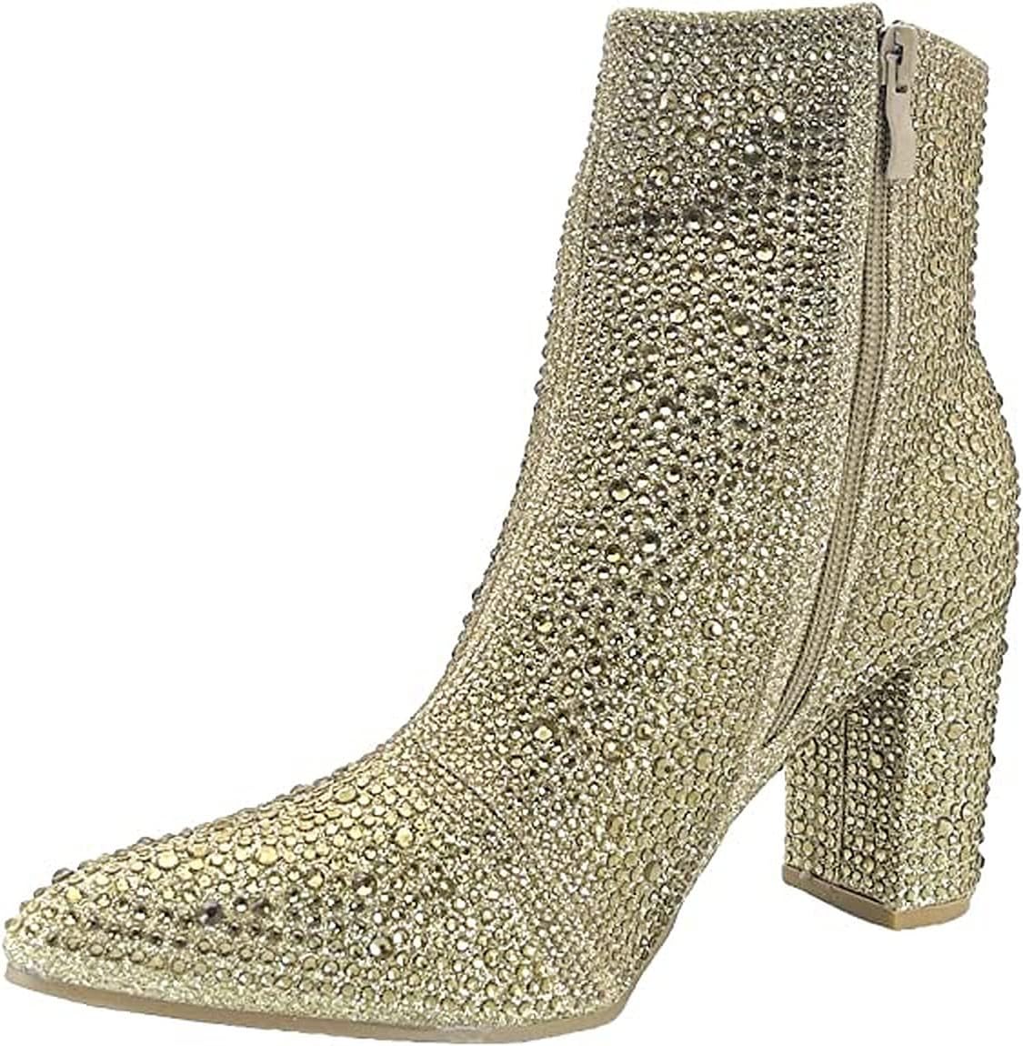 Women Rhinestone Block Chunky Heel Ankle Bootie Iceberg 12 By Forever shoes Gold Size 7