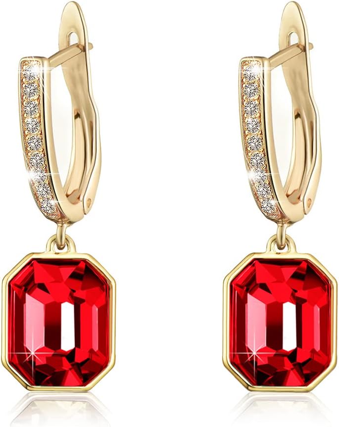 Austrian Crystal Octagon Leverback Drop Earrings for Women 14K Gold Plated Hypoallergenic Jewelry