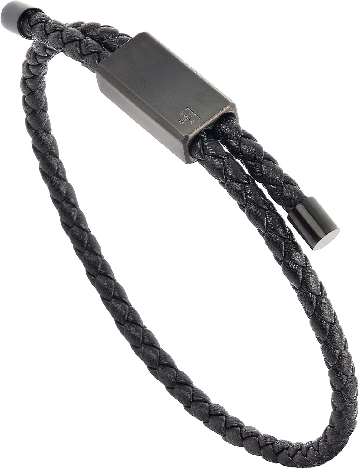Forge & Foundry Men's Adjustable Black Braided Leather Bracelet | Drapers | Matte Black Stainless Steel Slider | Refined Hand-Crafted Jewelry, Designed by Jewelers, Forged for Men