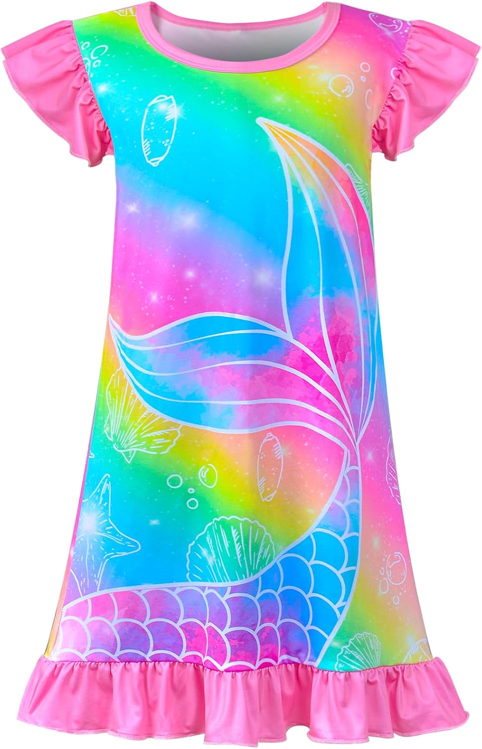 Kid Girls Nightgown Night Dress Unicorn Rainbow Princess Pajamas Sleepwear Nightie