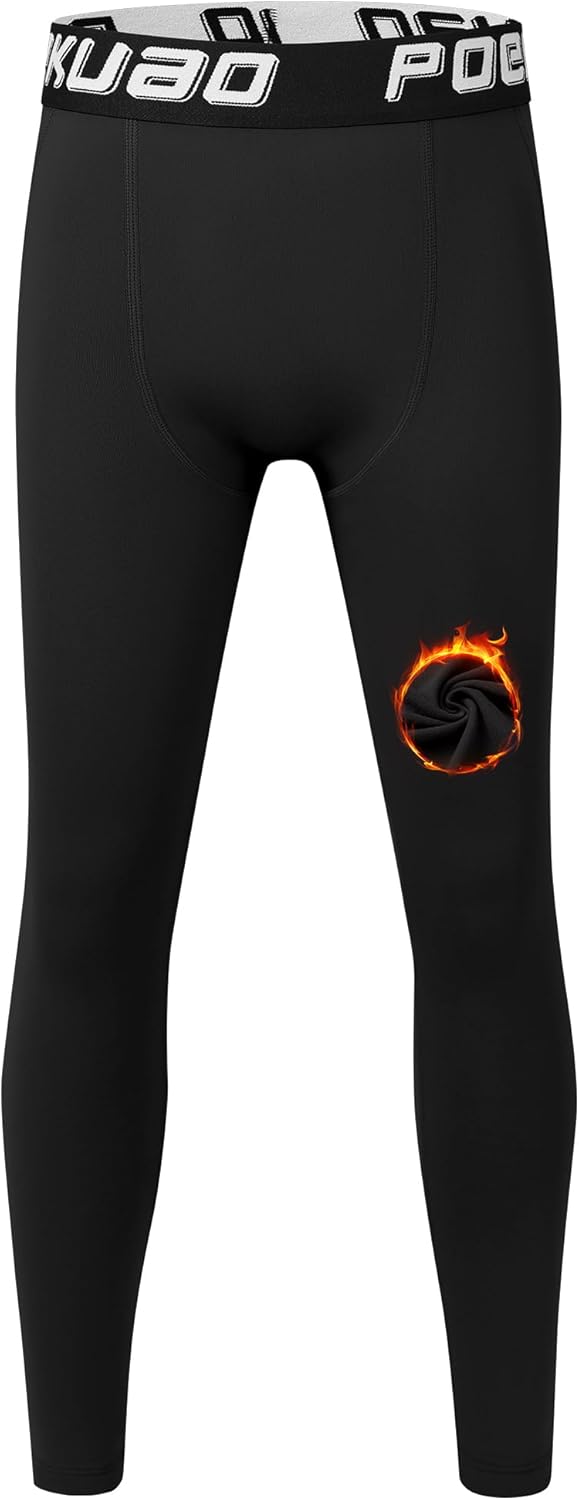 Boys Thermal Compression Pants Youth Fleece Lined Sports Base Layer Leggings Kids Athletic Tights Cold Weather Gear