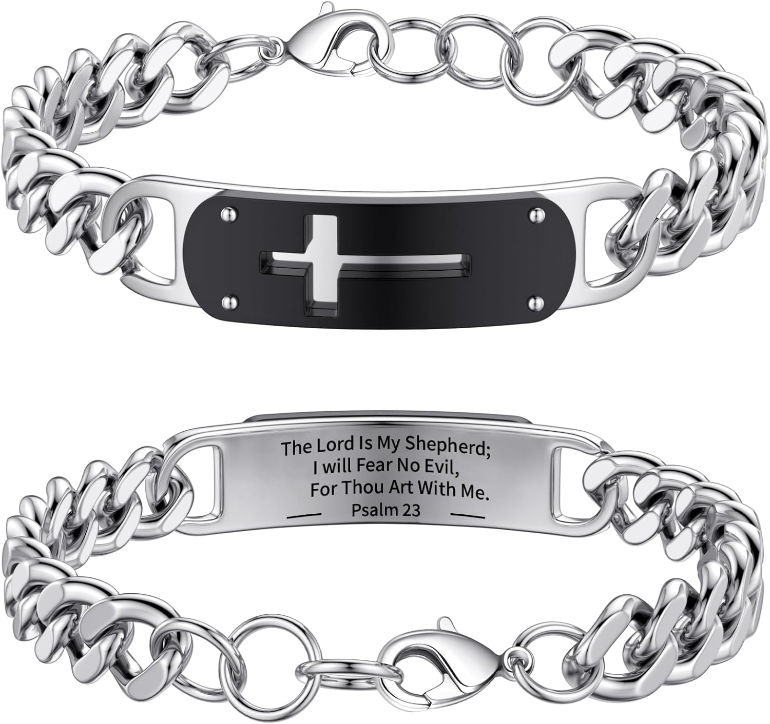 Jesus Cross Bracelet for Men Boys, Stainless Steel Cuban Cross Chain Link Bracelets Bible Verse Christian Cool Jewelry Graduation Trendy Valentine gifts for Kids Teen Boy
