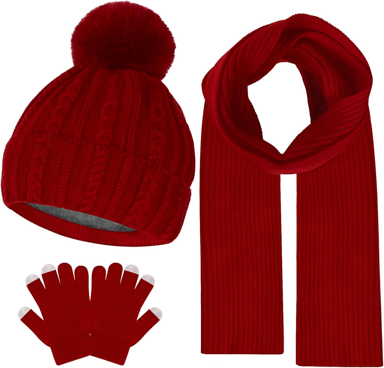 Kids Winter Hat Gloves Scarf Set Winter Knit Beanie Cap with Pompom Scarf Gloves Warm Set for Toddlers Boys Girls Ages 2-8