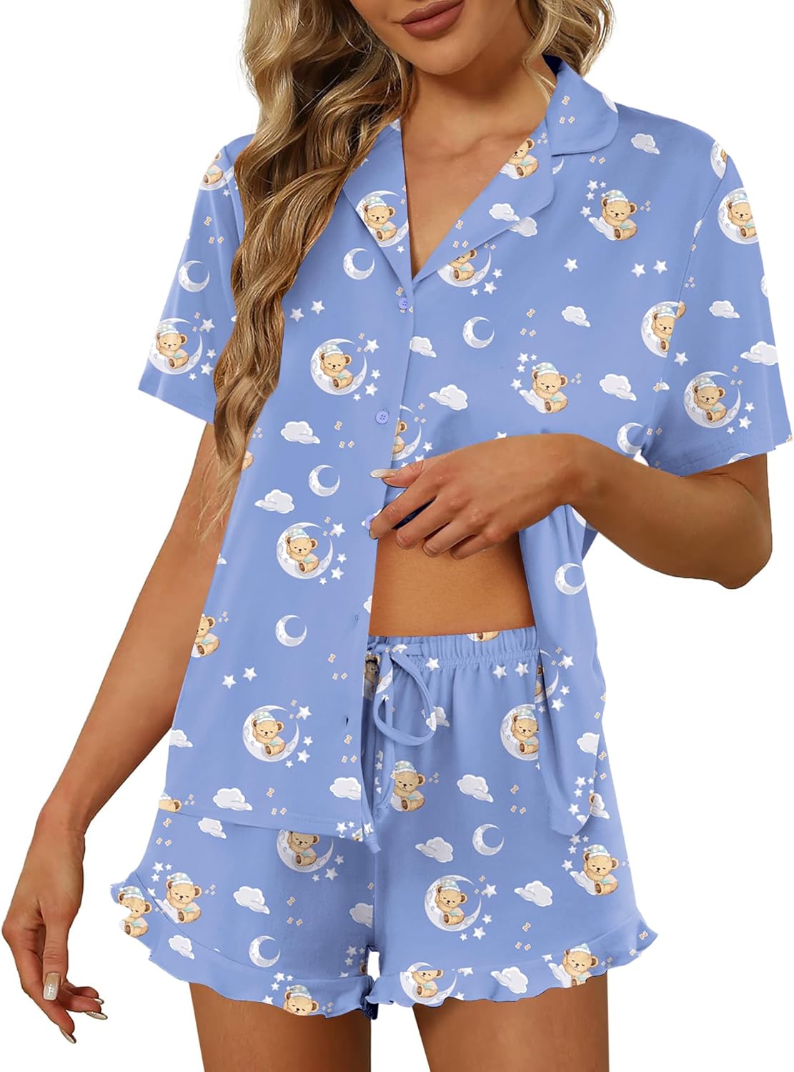 Ekouaer Pajamas Set for Women Short Sleeve Sleepwear Button Down Pjs Lounge Sets Soft Nightwear