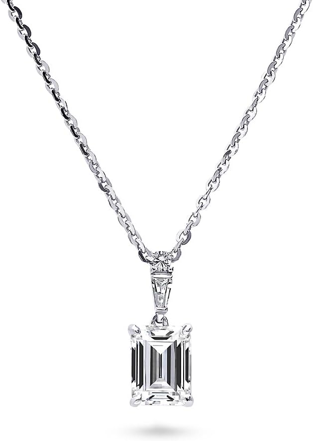 BERRICLE Sterling Silver Solitaire 1.7 Carat Step Emerald Cut Cubic Zirconia CZ Pendant Necklace for Women, Rhodium Plated 18 inch