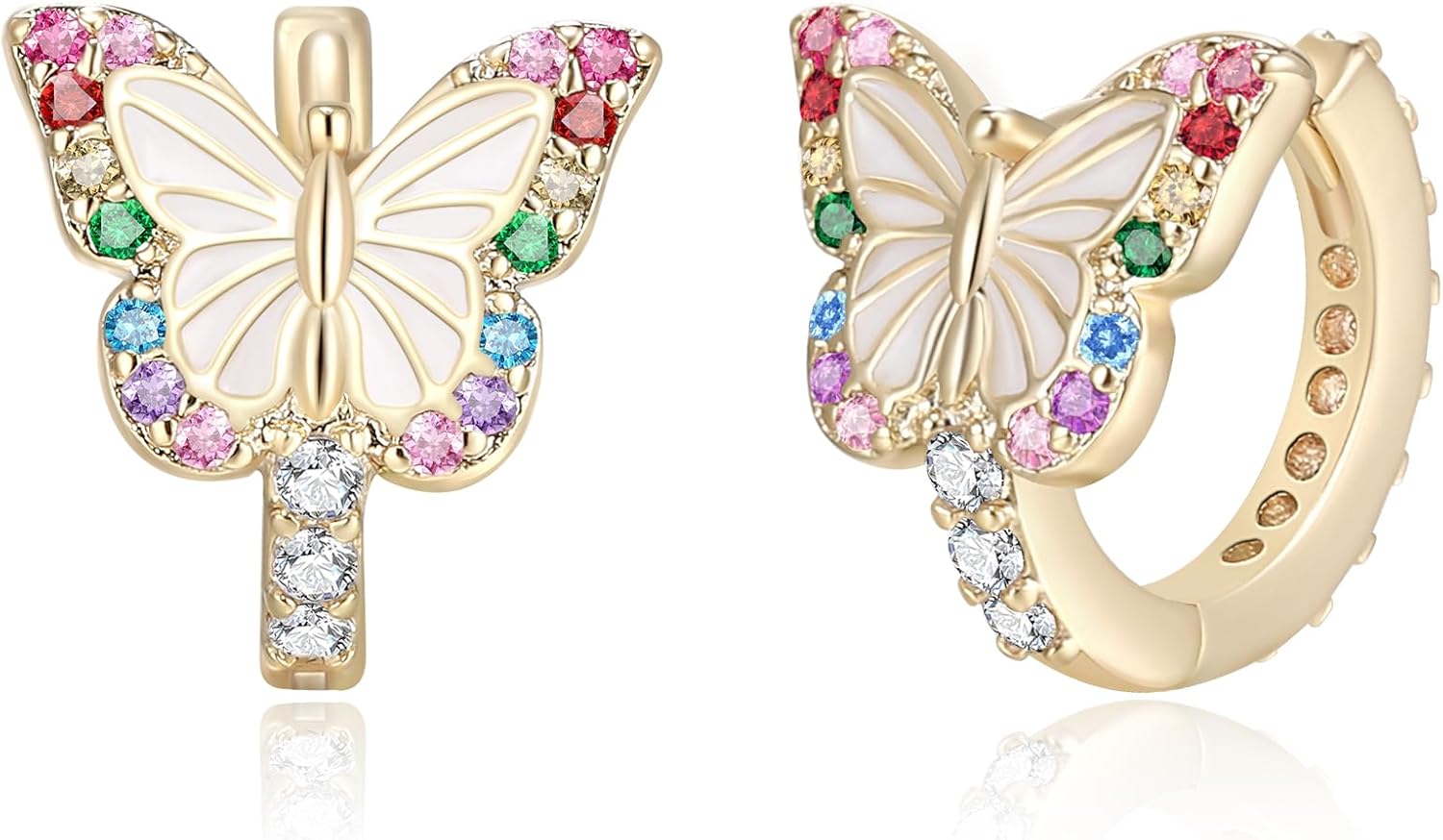 Butterfly Earrings for Women Girls, Hypoallergenic CZ 14K Gold Plated Butterflies Small Tiny Huggie Hoop Earring Jewelry Gifts